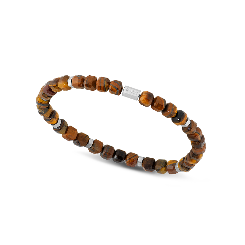 Bracelet BORÉAL en pierres naturelles d'œil de tigre 5,5mm et acier satiné