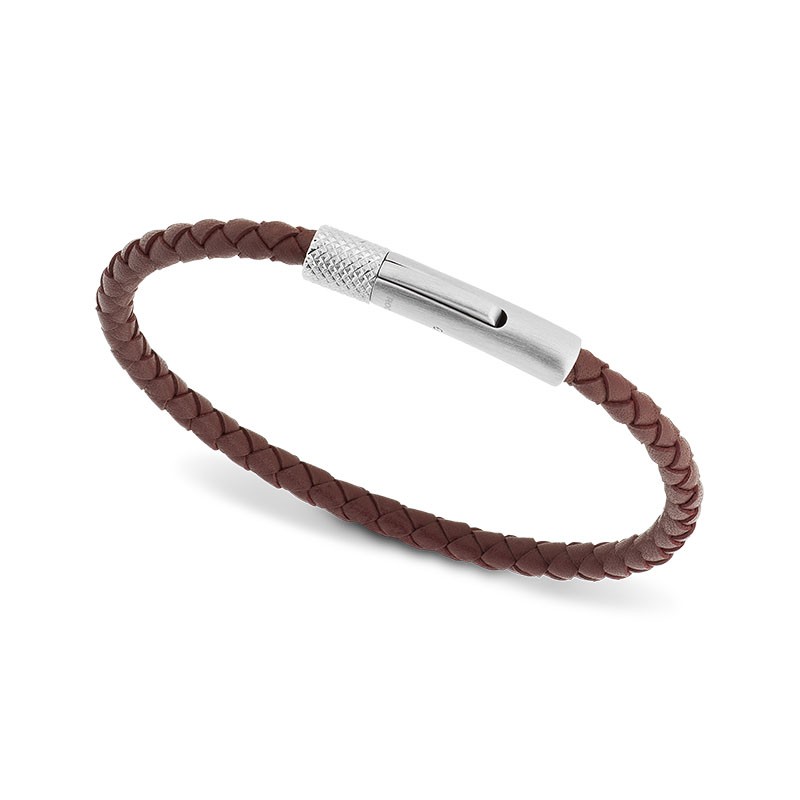Vous vous ennuyez à porter toujours les même coloris sombres? Colorez votre style! Le Bordeaux, majestueux et chaleureux! Élégance discrète. Ce bracelet en cuir tressé, sublimé par un fermoir acier à bouton-poussoir et un motif pointe de diamant, allie finesse et caractère. Un bijou masculin, parfait.