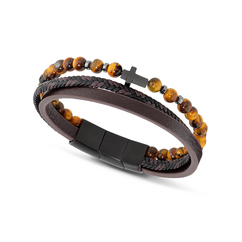 Plongez dans un univers de sérénité et de force avec notre collection MYSTÈRES. Ce bracelet en perles d’œil de tigre, orné d’une croix en PVD noir et de simili cuir, incarne la protection et la force intérieure, tout en affirmant un style moderne, sobre et puissant.