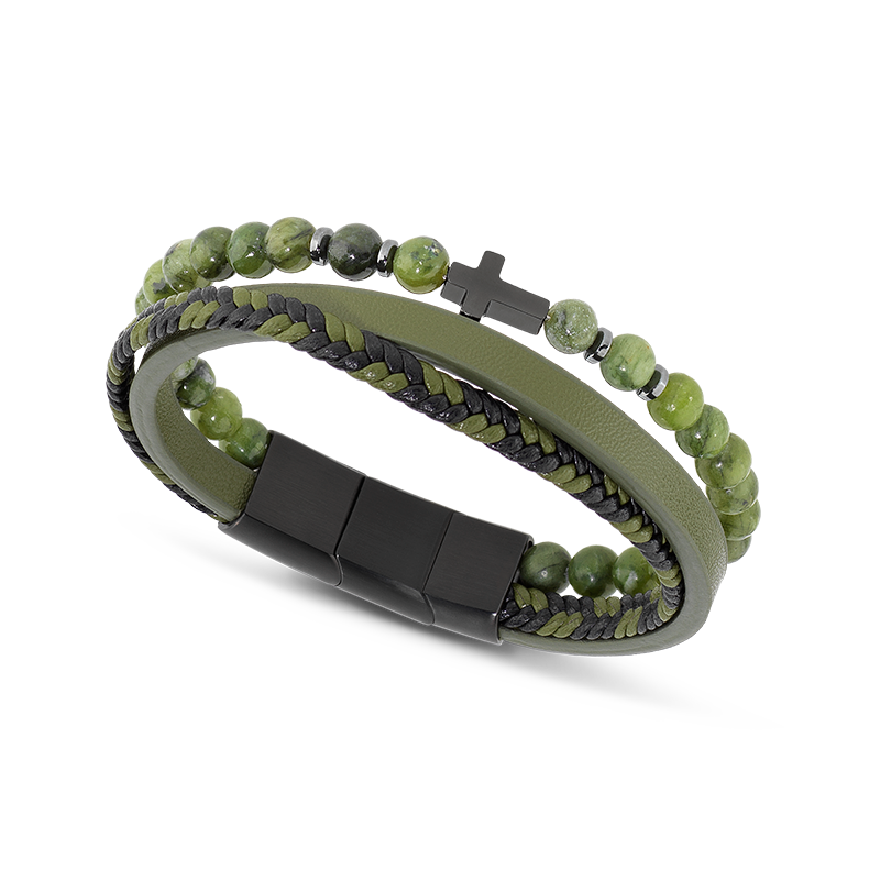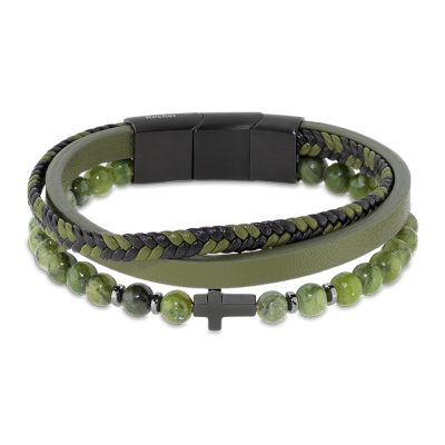 Plongez dans un univers de sérénité et de force avec notre collection MYSTÈRES. Ce bracelet en perles de jaspe verte, associé à du simili cuir kaki et noir et orné d’une croix en PVD noir, incarne l’équilibre et la protection, tout en offrant un style à la fois moderne, affirmé et raffiné.