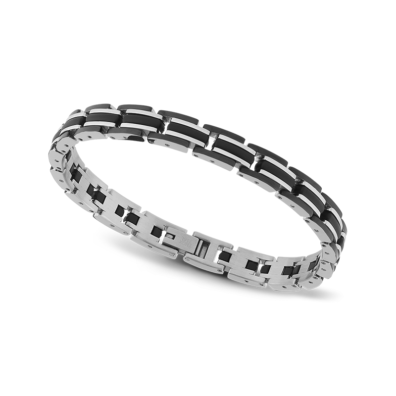Une grande originalité pour le bracelet Nexus ! L'alliance de l'acier satiné PVD noir, aux inserts en silicone noir enrichit ce bracelet d'un raffinement moderne et technique.
