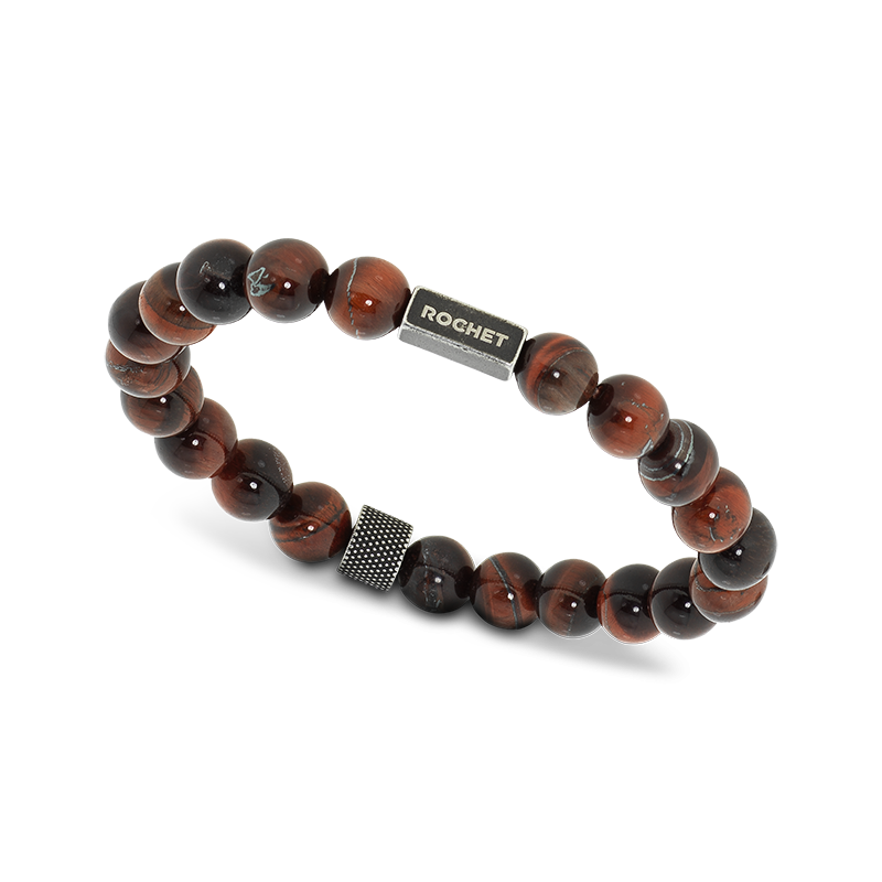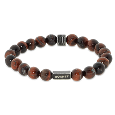 Bracelet ZEN élastique perles 8mm œil de taureau et acier vintage moleté